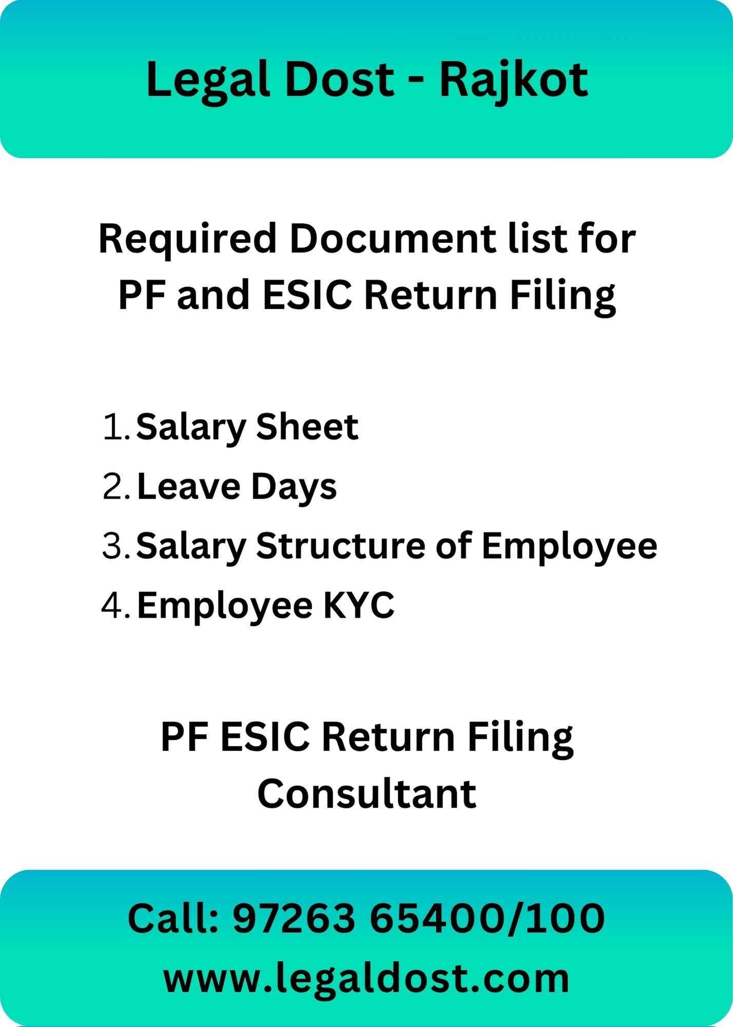 PF & ESIC Return Filing Consultant in Rajkot